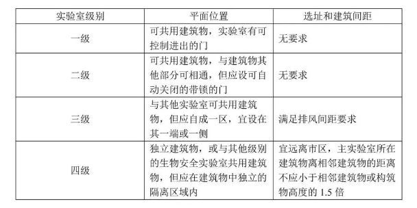 在設計和裝修層面,各級生物安全實驗室需要滿足以下位置要求: